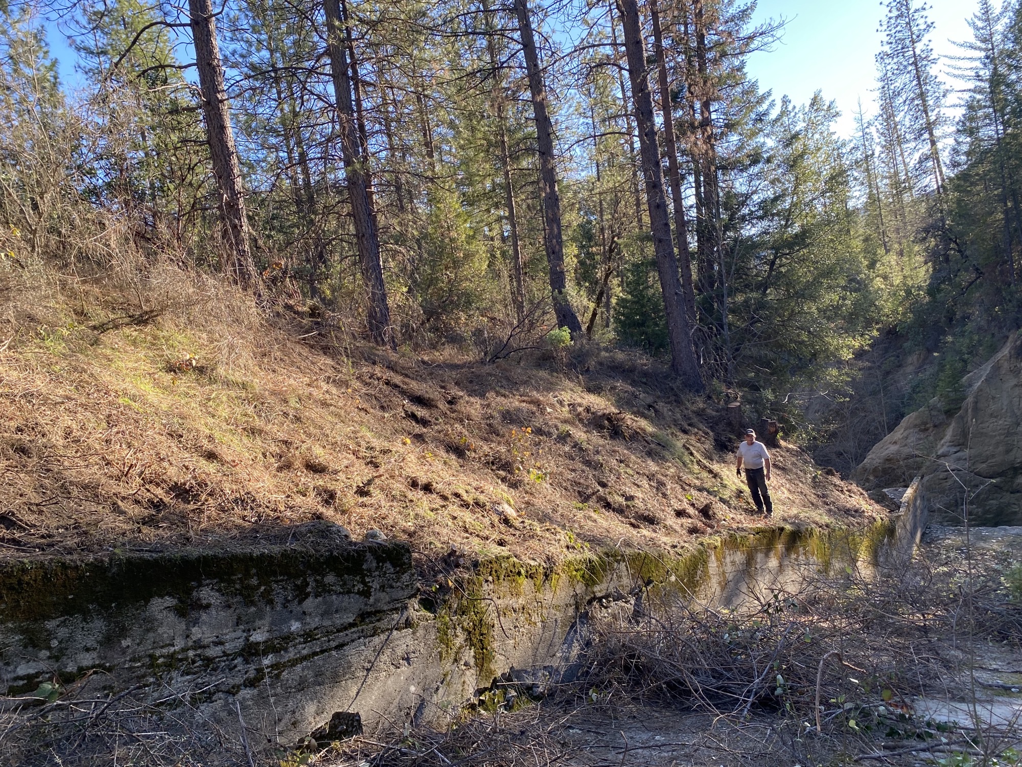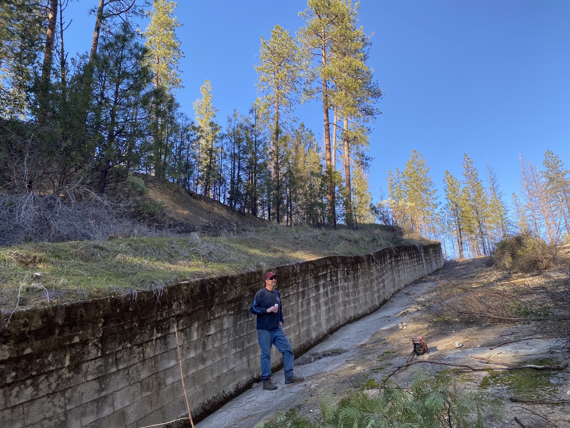 Below are after pics from January 2022 cleanup/maintenance on the Misslebeck Dam Spillway, specifically brush clearing 10 feet from the wall.
